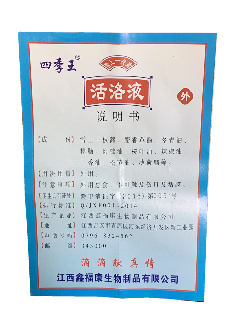成 份:雪上一支蒿,麝香草酚,冬青油,樟脑,肉桂油,桉叶油,辣椒油,丁香油。