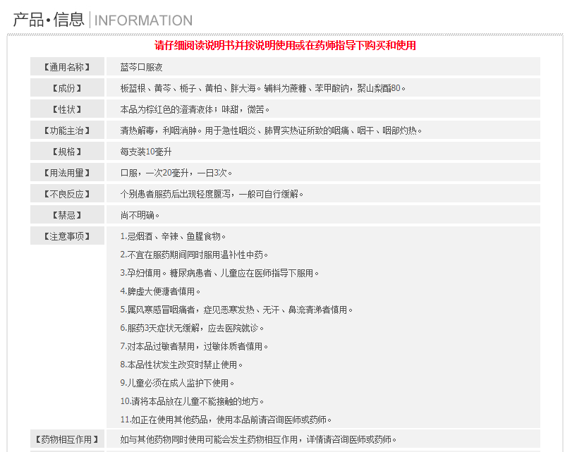 产品名称:扬子江 蓝芩口服液 10ml*...